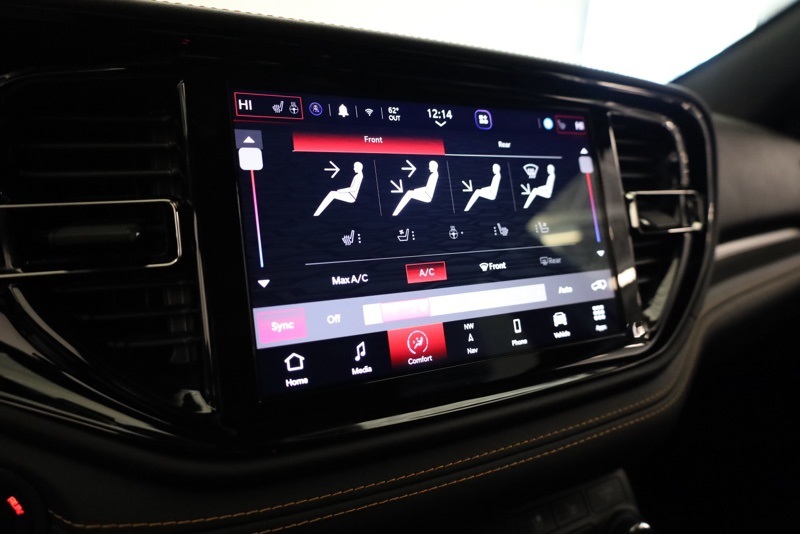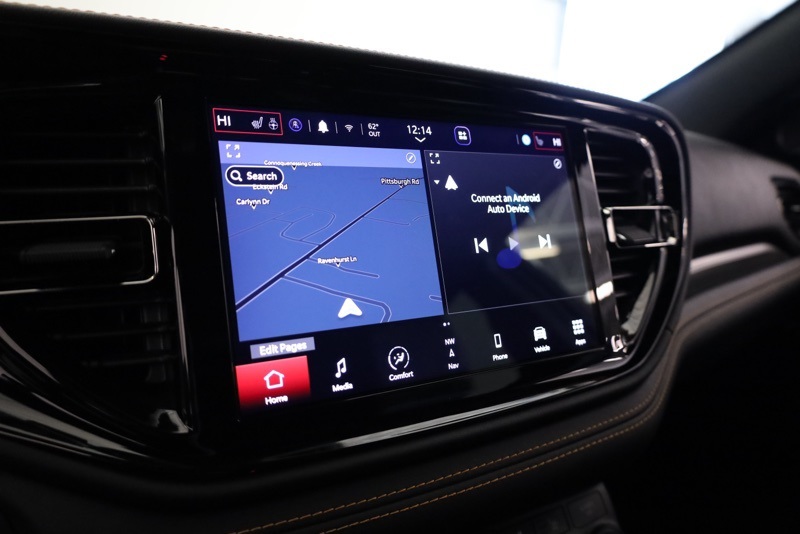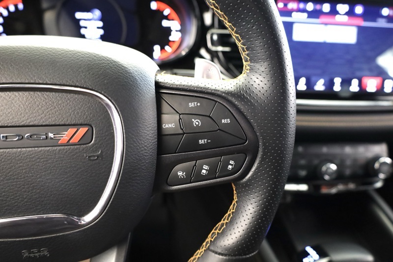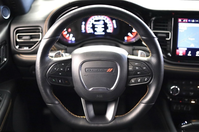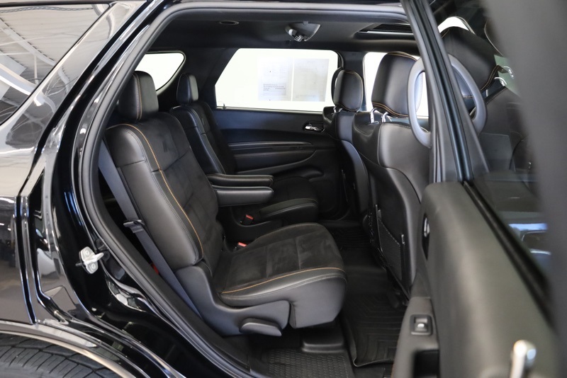 Certified. **CHRYSLER CERTIFIED**, **RARE ORANGE SPORT PACKAGE**, **SECOND ROW CAPTAIN CHAIRS**, **MEMORY DRIVER SEAT**, **HEATED AND COOLED FRONT SEATS**, **HEATED 2ND ROW SEATS**, **FULL SPEED FORWARD COLLISION WARNING**, **ORANGE ACCENT STITCHING**, **ADAPTIVE CRUISE CONTROL**, **20" BLACK NOISE ALUMINUM WHEELS**, **POWER TILT / TELESCOPING WHEEL**, **PERFORMANCE HOOD**, **FLOWMASTER EXHAUST**, **10.1 TOUCHSCREEN RADIO**, **APPLE CARPLAY / ANDROID AUTO**, **SUNROOF**, AWD, 115V Auxiliary Power Outlet, 2nd Row Fold/Tumble Captain Chairs, 2nd Row Mini Console w/Cupholders, 2nd Row Seat Mounted Inboard Armrests, 3rd Row Floor Mat & Mini Console, 4-Wheel Disc Brakes, 6-Passenger Seating, ABS brakes, Adaptive Cruise Control w/Stop, Alloy wheels, Black Stripe w/Orange Tracer, Brake assist, Compass, Dual front impact airbags, Dual front side impact airbags, Dual Remote USB Port - Charge Only, Electronic Stability Control, Emergency communication system: SiriusXM Guardian, Floor Console w/Leather Armrest, Front anti-roll bar, Front dual zone A/C, Full Speed Forward Collision Warning Plus, Heated door mirrors, Heated front seats, Heated Second Row Seats, Illuminated entry, Knee airbag, Leather Trimmed Bucket Seats w/Logo, Low tire pressure warning, Midnight Metallic Gray Badge, Occupant sensing airbag, Orange Accent Stitching, Orange Sport Package, Overhead airbag, ParkView Rear Back-Up Camera, Power 8-Way Driver Memory 8-Way Passenger Seats, Power Driver/Passenger 4-Way Lumbar Adjust, Power Liftgate, Power Tilt & Telescopic Steering Column, Premium Instrument Panel, Quick Order Package 22F HEMI Orange, Radio/Driver Seat/Mirrors Memory, Rear anti-roll bar, Remote keyless entry, Satin Black Dodge Tail Lamp Badge, Traction control, Ventilated Front Seats, Wheels: 20" x 8.0" Black Noise Aluminum. Recent Arrival! DB Black Crystal Clearcoat 2023 Dodge Durango Orange Sport AWD 8-Speed Automatic HEMI 5.7L V8 Multi Displacement VVT