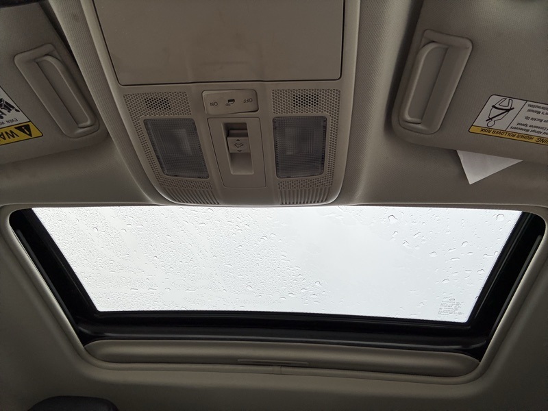 - First-row sliding and tilting glass sunroof with express open activation sunshade