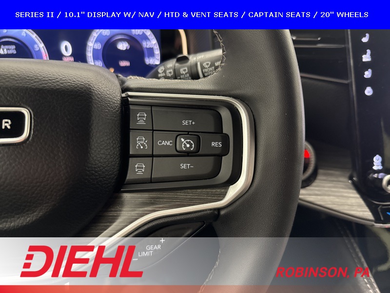 Safety is loaded with Adaptive Cruise Control with Stop and Go, Blind Spot Monitoring, Full Speed Forward Collision Warning Plus, Active Lane Management, ParkView rear backup camera, ParkSense front and rear park assist, pedestrian emergency braking, and more. Select Terrain and a single speed on demand transfer case ensure this 4x4 Wagoneer is ready for Pittsburgh winters, road trips, or towing with confidence.