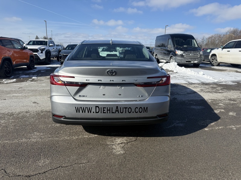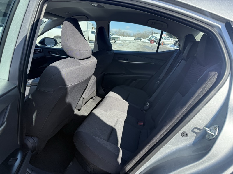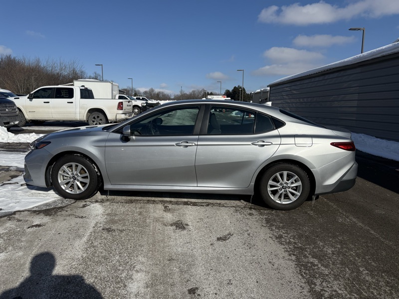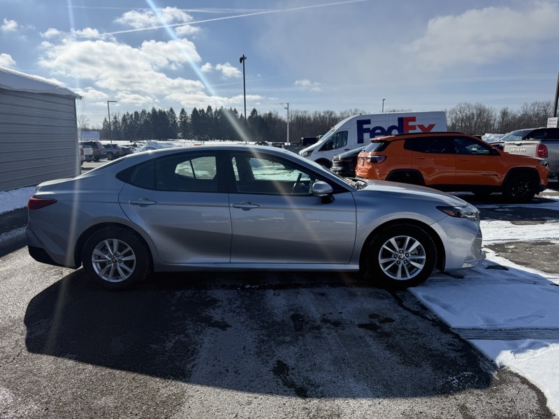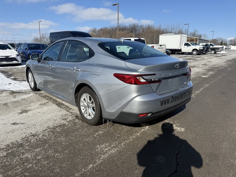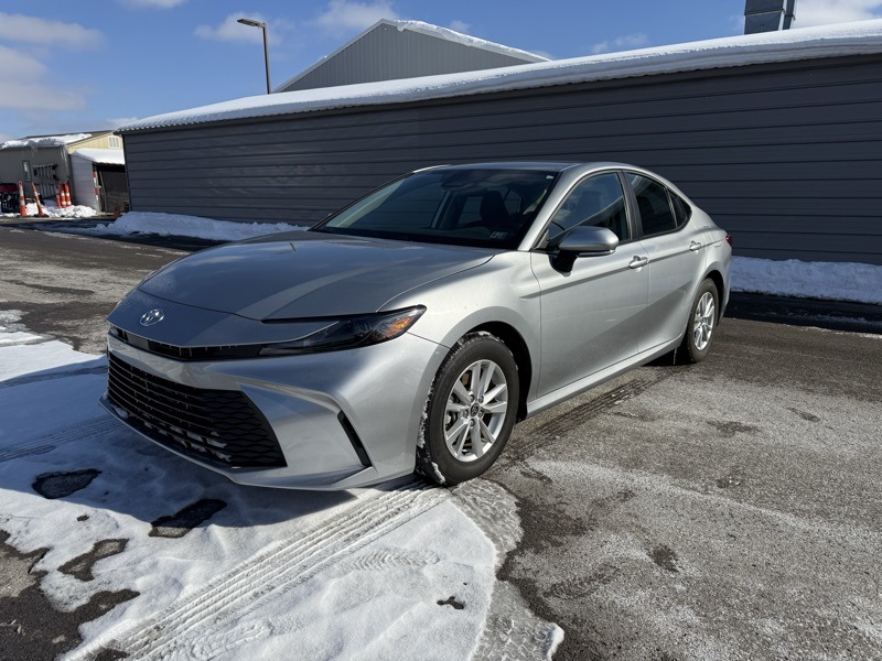 **TOYOTA CERTIFIED**, **CLEAN CARFAX ONE OWNER**, **IN STORE LOANER**, **PRE COLLISION SYSTEM**, **ADAPTIVE CRUISE CONTROL**, **AUTO HIGH BEAMS**, **LANE KEEP ASSIST**, **BLIND SPOT DETECTION**, **16" ALLOY WHEELS**, **KEYLESS ENTRY**, **APPLE CARPLAY / ANDROID AUTO**, **8" TOUCHSCREEN RADIO**, **7" DIGITAL GAUGE CLUSTER**, **DUAL ZONE CLIMATE CONTROL**, 2.5L 4-Cylinder 16V DOHC, Black w/Fabric Seat Trim, 4-Wheel Disc Brakes, ABS brakes, Dual front impact airbags, Dual front side impact airbags, Emergency communication system: Safety Connect (up to 10-year trial subscription), Front anti-roll bar, Knee airbag, Low tire pressure warning, Occupant sensing airbag, Overhead airbag, Rear anti-roll bar, Rear side impact airbag. Recent Arrival! CARFAX One-Owner. Clean CARFAX. Celestial Silver Metallic 2025 Toyota Camry LE FWD eCVT 2.5L 4-Cylinder 16V DOHC